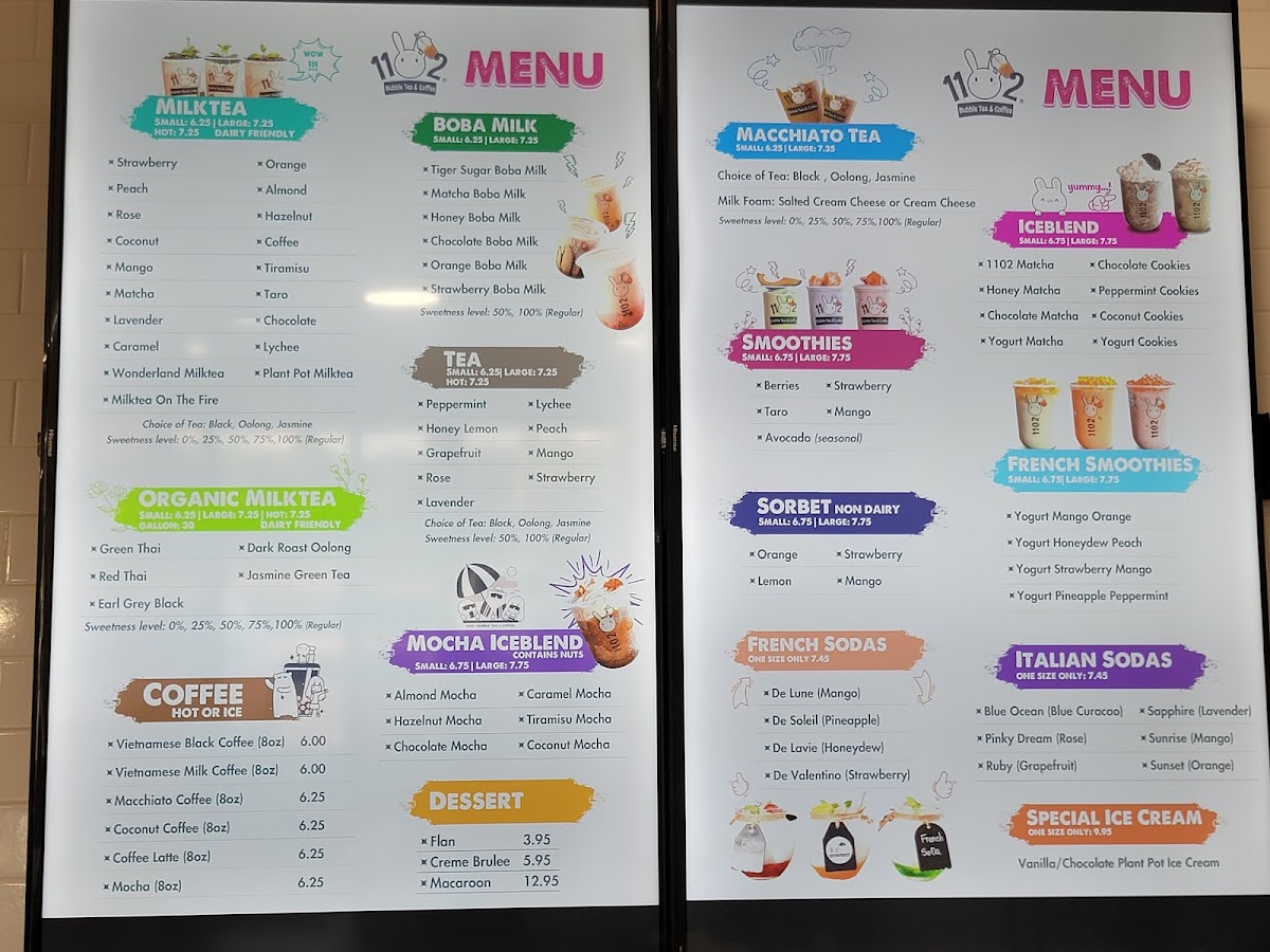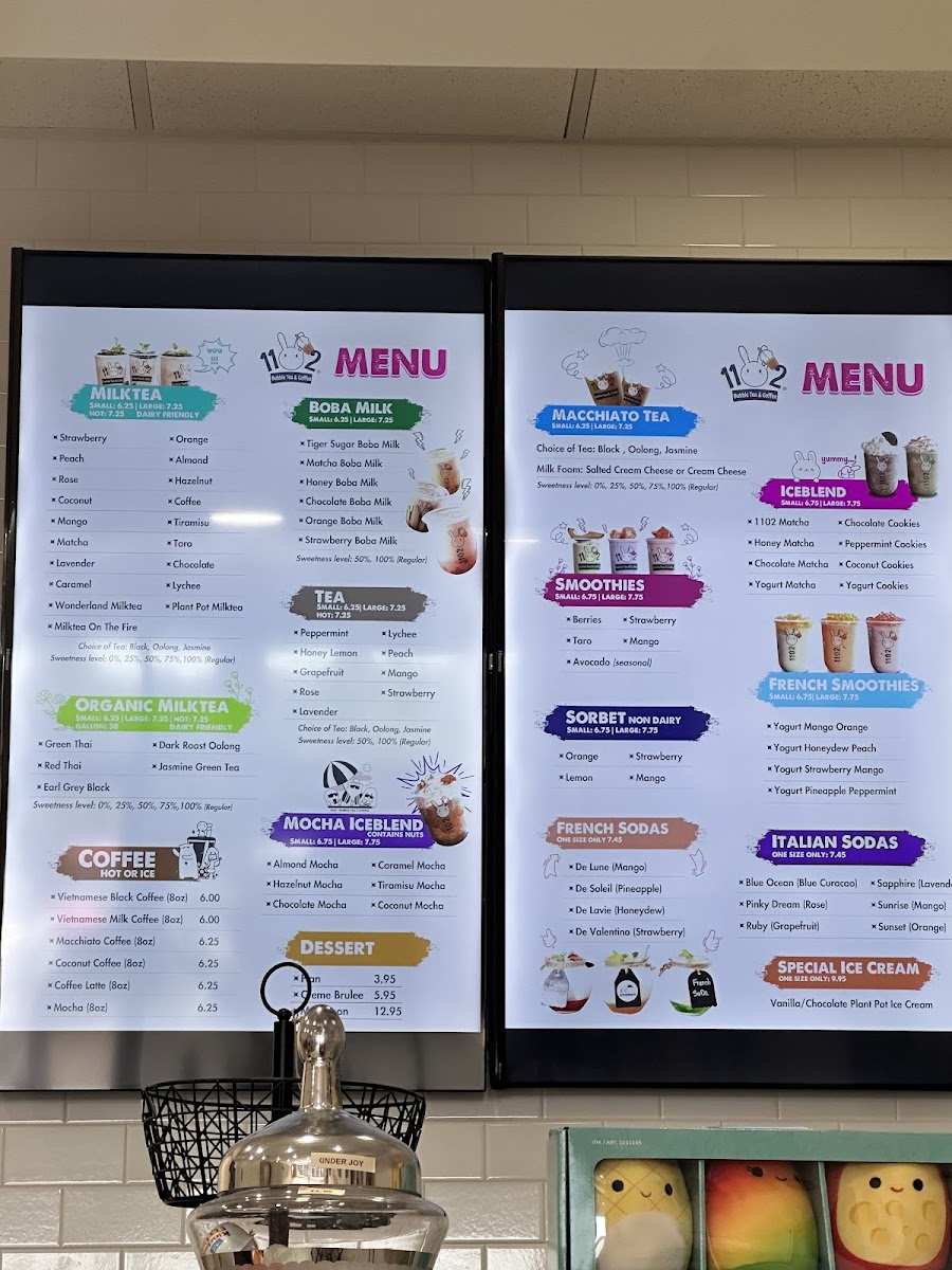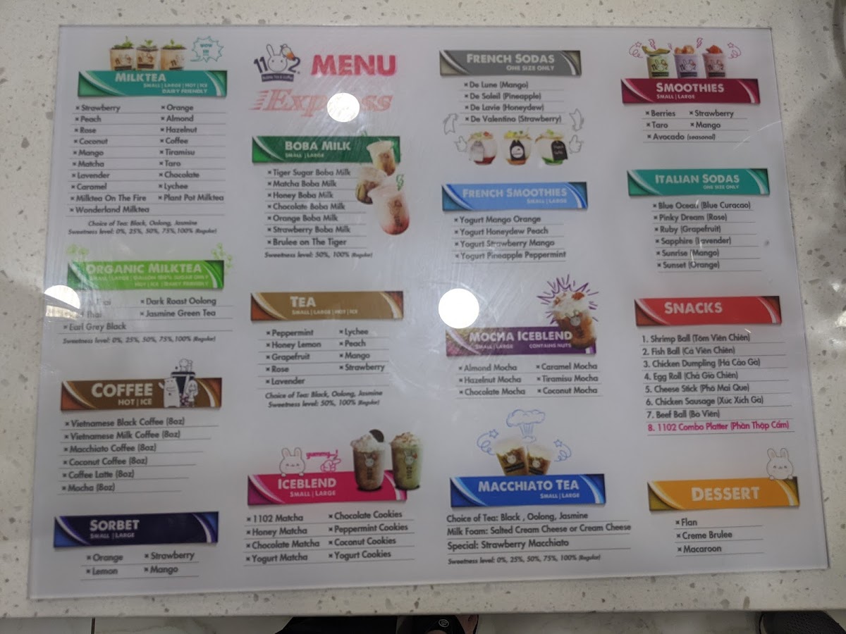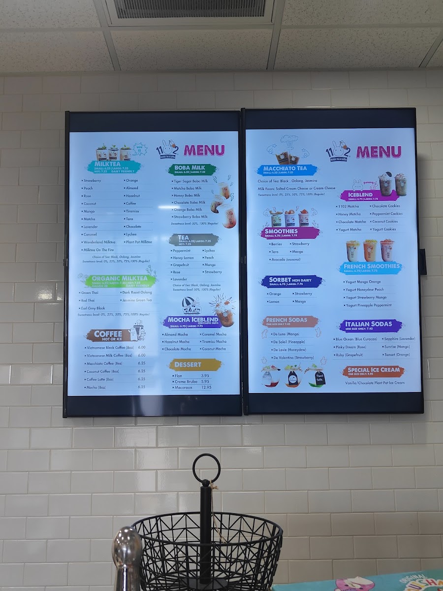 1102 Bubble Tea & Coffee Menu